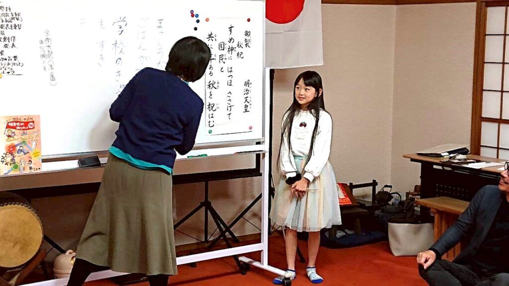 寺子屋の活動を締めくくるのは、11月3日に開催される平田神社の例大祭での「歌の発表」です。